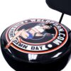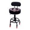 Weldporn adjustable shop stool with 3in casters and backrest, pinup logo